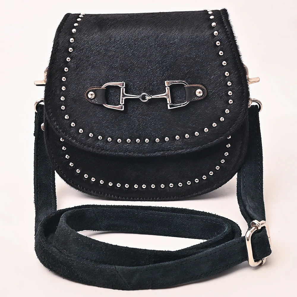 The Snaffle bag showcases authentic black cowhide leather crafted with equestrian-inspired design elements. This structured silhouette features the distinctive snaffle hardware detail that defines the style, delivering both sophistication and functional appeal. The durable cowhide construction ensures longevity while developing a rich patina over time. Perfect for those who appreciate quality leather goods with refined, understated elegance. An investment piece that transitions seamlessly from day to evening wear.