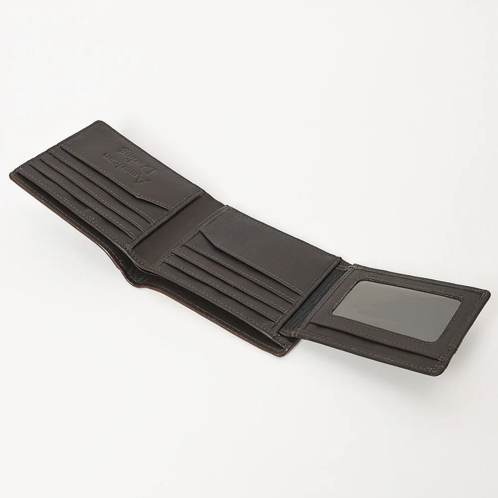 Crafted from genuine hair-on leather, this Western rodeo wallet combines authentic rustic charm with durable construction. The engraved design adds a distinctive, artisanal touch, reflecting heritage craftsmanship. Its compact layout offers practical organization for cards and cash, making it a